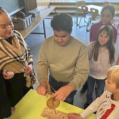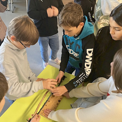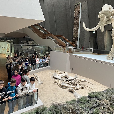 Die Klassen 5a und 5b behandelten in den letzten Wochen das Thema „Steinzeit“ im Geschichtsunterricht. Um noch mehr über das Thema zu erfahren, besuchten die Klassen jetzt im November das Naturkundemuseum am Löwentor. Dort tauchten die Kinder in die Steinzeit ein, bestaunten das ausgestellte Mammut, die Materialien und Gegenstände der damaligen Menschen und lernten wie die Menschen in der Steinzeit Feuer machten. Dies auch selbst ausprobieren zu dürfen, war ein ganz besonderes Erlebnis!