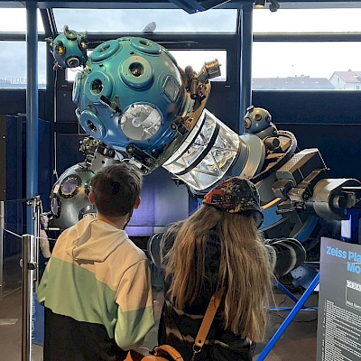 In eindrucksvollen Bildern und Computeranimationen wurde uns im Planetarium Stuttgart die Entwicklung des Universums gezeigt. Von den gewaltigen Sternexplosionen auf der Erde bis zur Geschichte der Dinosaurier und anderen Wesen der Urzeit. Ein schöner Ausflug passend zu unserem ersten Geschichtsthema („Eine Reise durch die Zeit“).
