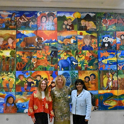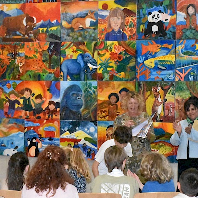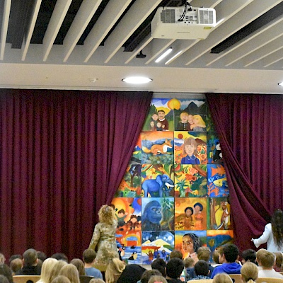 So entstand ein Kunstwerk, das spezifische Repräsentanten der sieben Kontinente zu einem großen farbenprächtigen Bild zusammenfasst.
