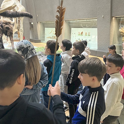 Die Klassen 5a und 5b behandelten in den letzten Wochen das Thema „Steinzeit“ im Geschichtsunterricht. Um noch mehr über das Thema zu erfahren, besuchten die Klassen jetzt im November das Naturkundemuseum am Löwentor. Dort tauchten die Kinder in die Steinzeit ein, bestaunten das ausgestellte Mammut, die Materialien und Gegenstände der damaligen Menschen und lernten wie die Menschen in der Steinzeit Feuer machten. Dies auch selbst ausprobieren zu dürfen, war ein ganz besonderes Erlebnis!